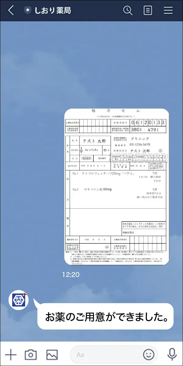 処方せんを送信ください。